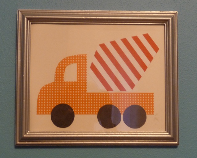 I've decided to embrace the tomboy and decorate with a transportation theme. My first big project, after painting the room turquoise, was some wall art. Hopefully she enjoys it long enough to make my efforts worth it (although to be fair, the entire project was less than $10 thanks to St. Vincents, spray paint, and scrapbooking paper from Michaels).